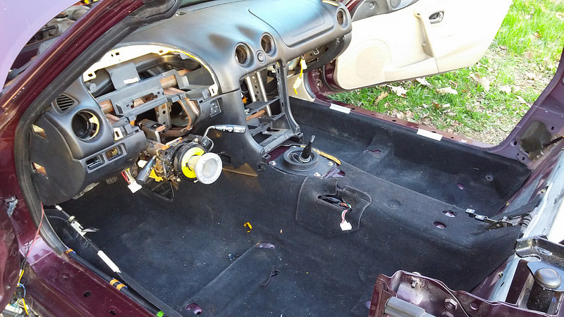 Removing yet another badly installed keyless entry from a Miata. by concealer404, on Flickr