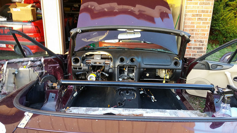 Boss Frog harness bar by concealer404, on FlickrAnd then of course, because i'm unable to buy a Miata without some wiring fuckery, i got to remove a keyless entry setup, which seems to have only been installed because the PO lost one of the OEM key fobs, and decided that badly installing a shitty keyless entry system was a better option than paying to have Mazda program a new fob? Not sure. But i hate him for it.