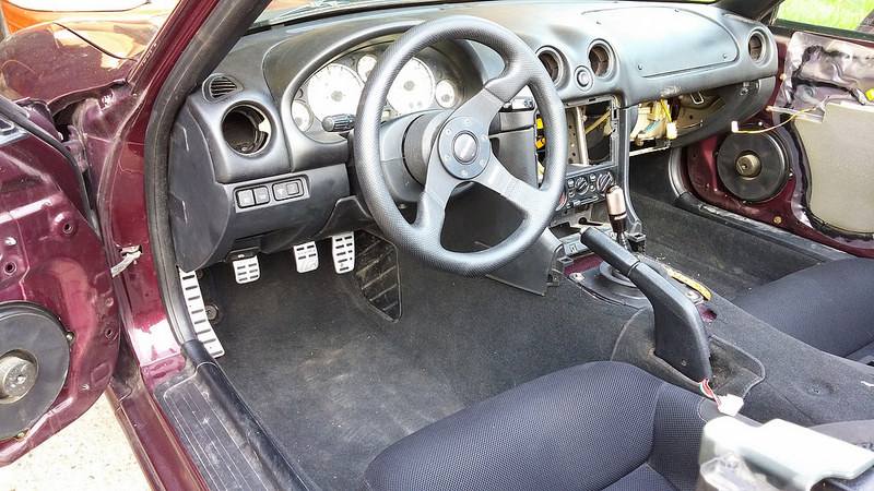 Zyduhz by concealer404, on FlickrInterior swap is mostly done. Need to cut down some Eclipse vents to throw in the holes, make my door panels, and get some accordian pins for the rear carpets. Installed the passenger airbag blockoff plate. Wasn't as nice of a part as i expected. Next time i'll make my own. That said, it's crazy how heavy that airbag was, so i'm glad it's gone.