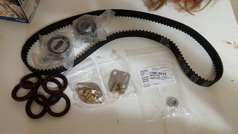 20150624_221259 by concealer404, on FlickrTiming kit (With ALL the cam seals for some reason), Trackspeed Engineering EGR and coolant neck blockoffs, plug for header side EGR.