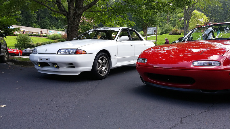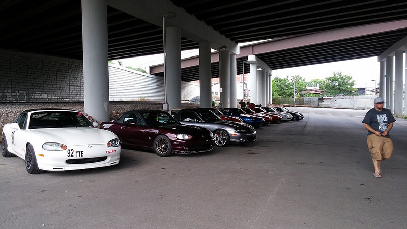 20150724_210741 by concealer404, on FlickrSaw this cool Sentra parked with the Miatas.