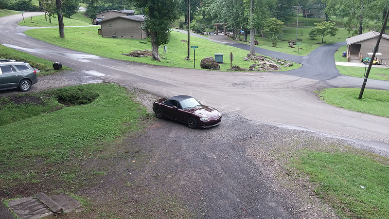 Rained on Thursday, so spent the day drinking at the cabin and taking pictures of my car in the rain from the porch.