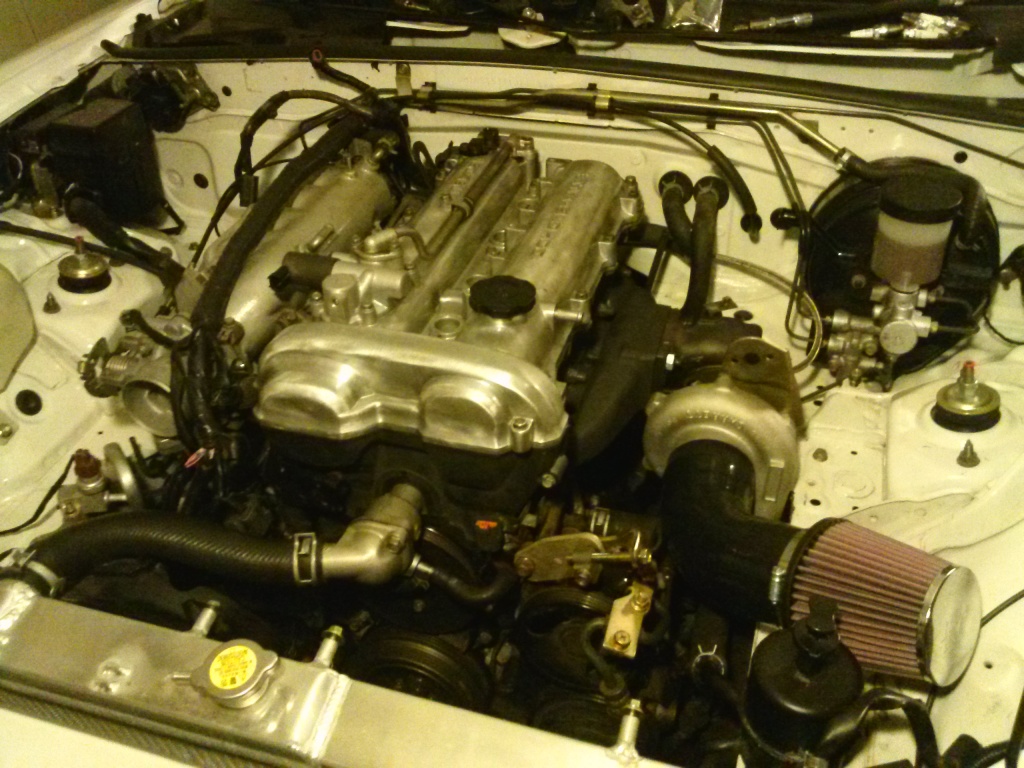 The up side is that the mani/turbo are bolted down for good. Water lines are halfway routed, oil drain is fitted, lower rad hose is fitted, and fmic hotside is fitted.