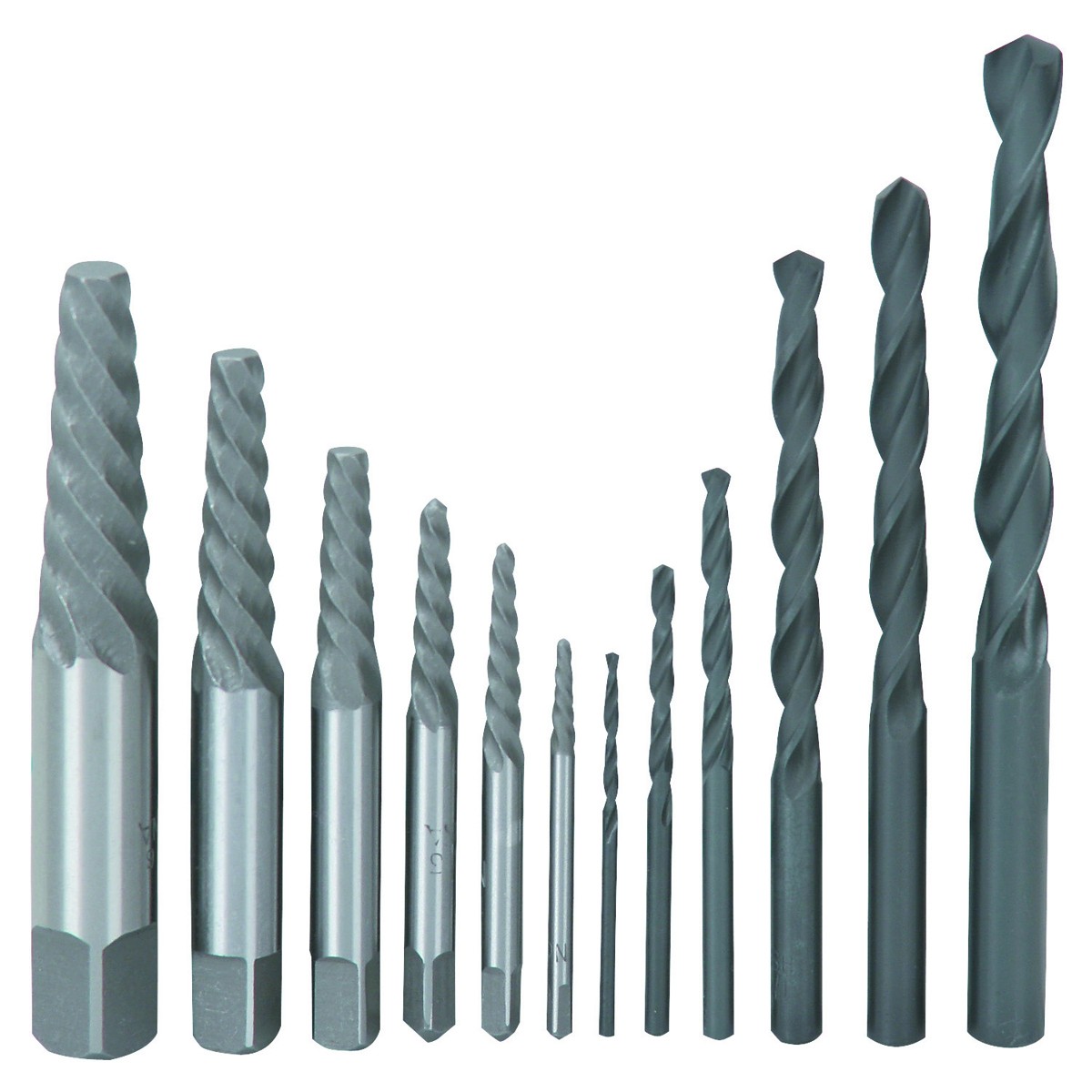 The left hand drills are really helpful. The easier bolts will come out with just these, and save you the trouble and risk of using the extractor bits.