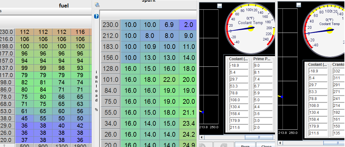 They are OK. Not bad, not rough anymore, but still not perfect. It takes a bit too many turns to fire up for my liking. Still trying to figure that one out, cause I don't think adding any more cranking pw's is helping. I've also fiddled with the spark map in those cells, which didn't seem to help too much. One other thing I'll be verifying is the idle valve position while cranking - I had it tuned decent, but that was on the previous ms3 so maybe it needs a bit of adjustment.