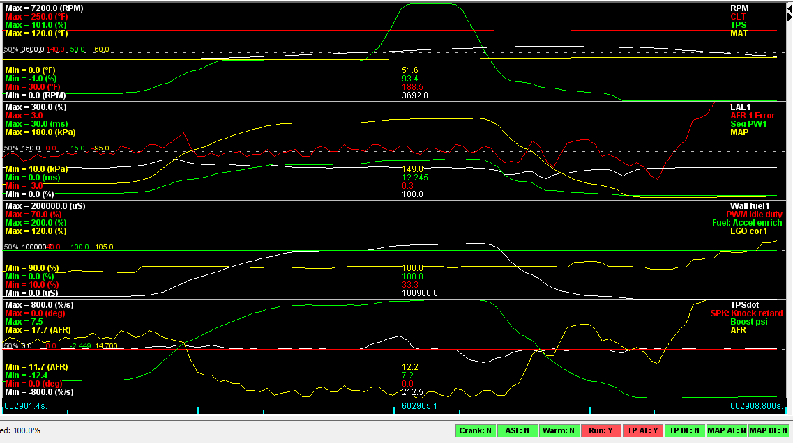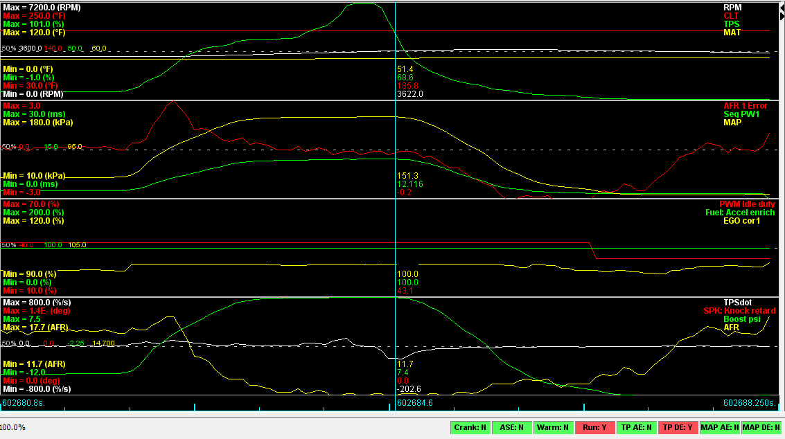 I did lower the idle valve cranking pw to see if I was just getting too much air on startup resulting in lean-ness, but that didn't seem to help much either.