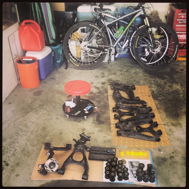 After the final round of the 2013 Miata Challenge I put the car up on jack stands to remove the coilover and take all of the suspension arms off for a poly bushing install.