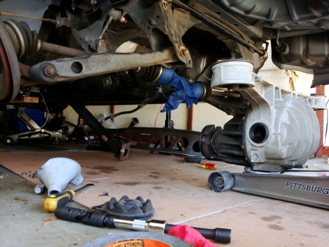 I also swapped my 3.9 t2 torsen with chris for his 4.1 t2 torsen. I installed a set of poly diff bushings in the carrier before I put it in the car. Also a pita but worth it. The blow torch really helps with these.