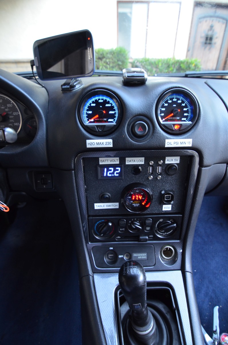 I wanted to have 2 5v powerd usb ports so i could charge my phone and gopro remote without having stuff hanging off the cig lighter. I also wanted a spot for a data log start and stop button. Another thing I wanted to avoid was just having a female usb cable sitting in the glove box. So I ordered up a USB female socket from amazon. Late in the game I decided it was a good idea to have a voltage gauge installed as well and I sourced a cheap digital voltage gauge from amazon as well.