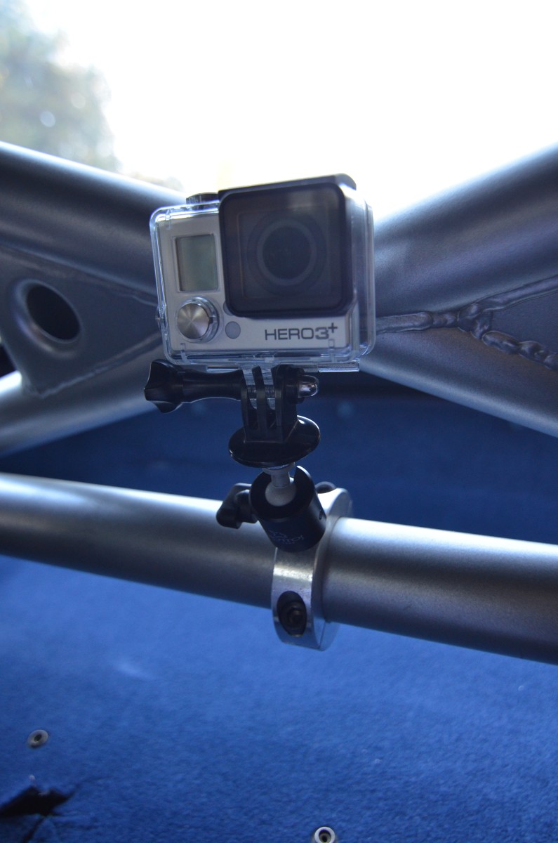 Here is that gopro mount I talked about earlier. This is really a much better solution than the roll bar mount that gopro sells. All you have to do is loosen the ball mount adjuster and the gopro goes limp and you can remove the SD card and remove the camera from the housing. Quite pleased with this.