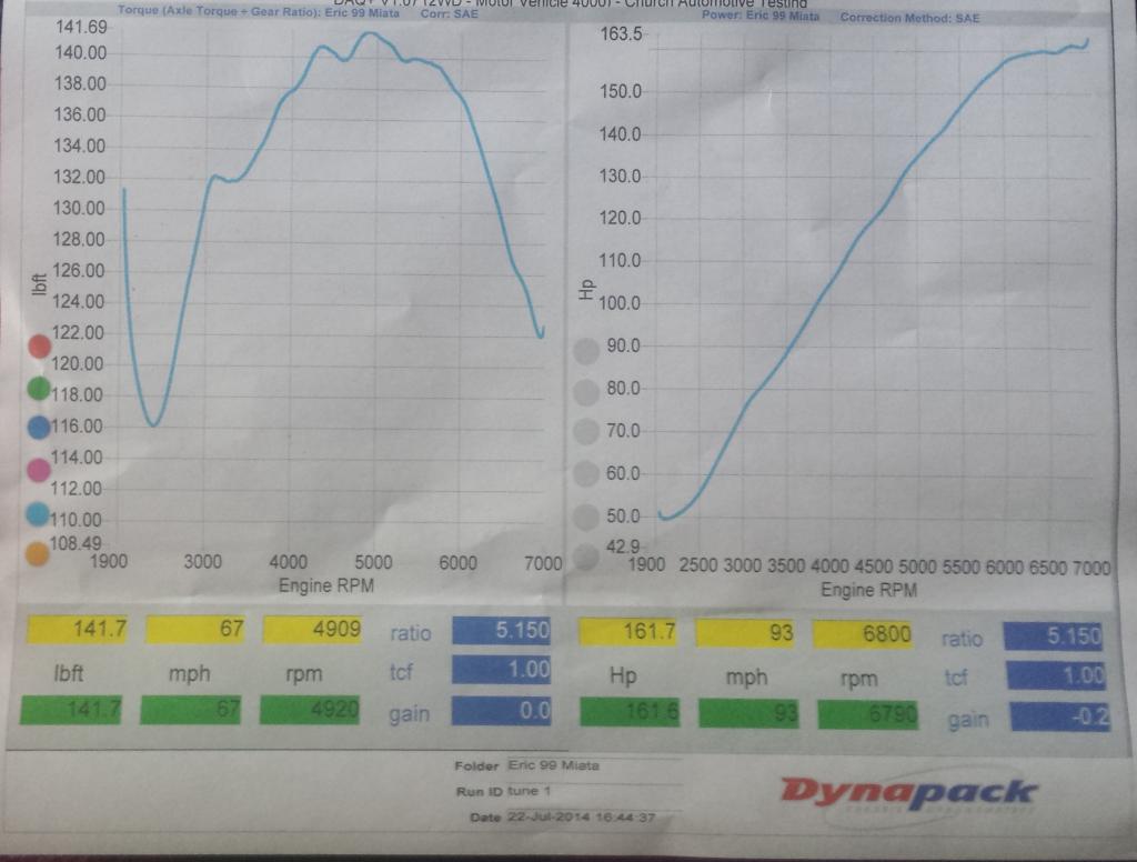 Overall I couldn't be more happy with the numbers and the way the car drives. This dyno of Church's read about 5-7% high so figure real numbers are around 150ish give or take. The car has been completely transformed.... the area under the curve of this vvt motor is mind blowing. I'll post some info on the tables and maps when I have a chance.