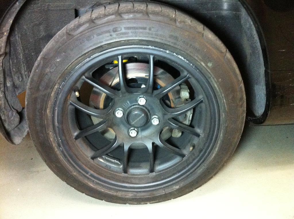 Installed the 15x9 wheels and notice that the front wheels and tires rub the stock springs at full steering lock, I will put some spacers up front to get trough the fist autocross next weekend, I would like to see how it handles with the stock sport suspension (+ front away bar) before changing anything, if I am happy with the handling I will put a set of 2.5" springs of the same rate with coil over adjusters