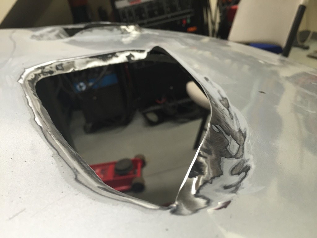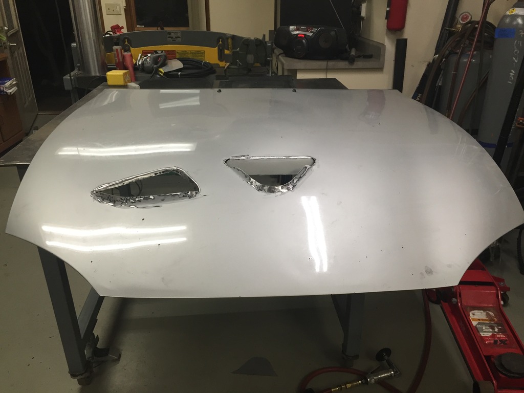 Unfortunatley this is a steel hood that i purchased without asking if it was oem, i will measure it when i get home, the OEM hoods are aluminum and i think that they are around 1mm thick it is likley to warp pretty bad if you tig it.