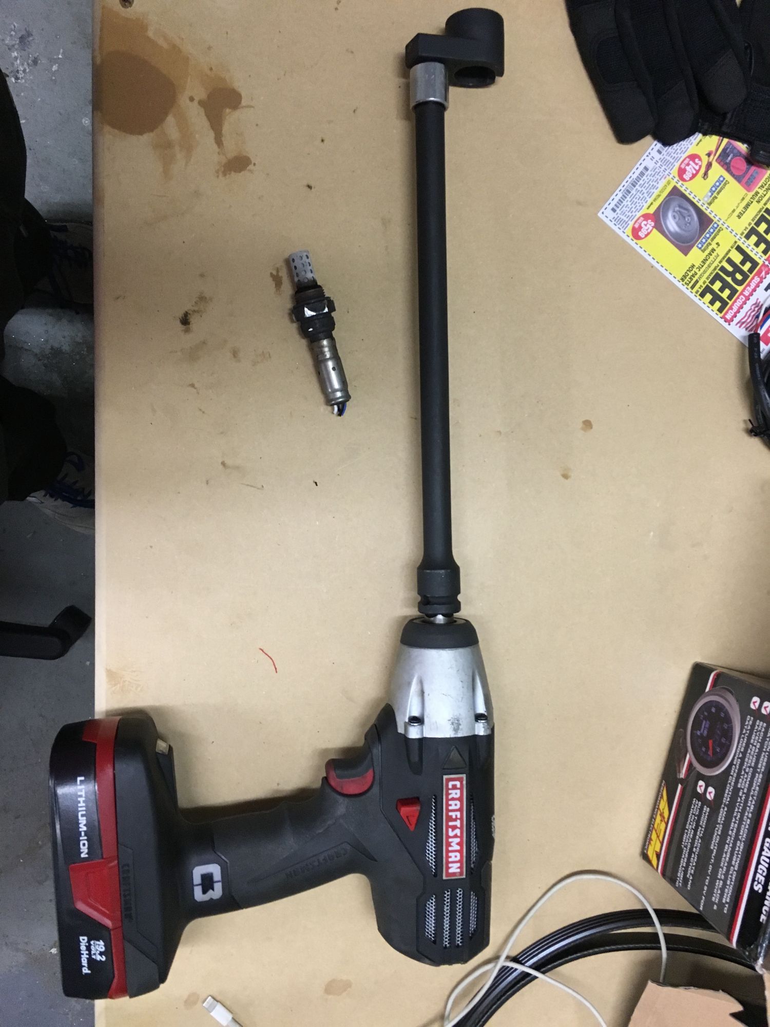 Electric 1/2" impact > extension > 3/8" reducer > harbor freight O2 socket