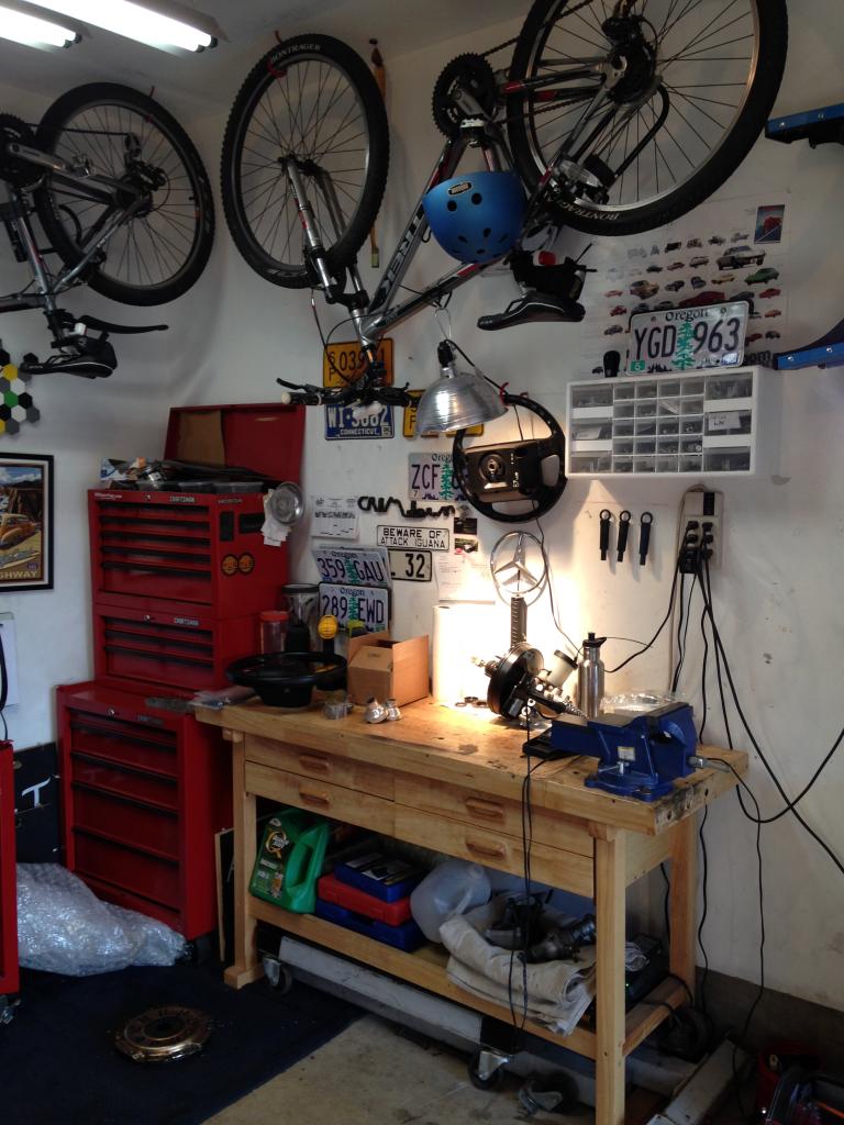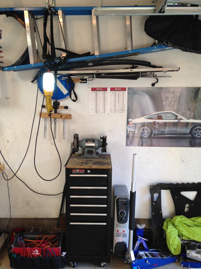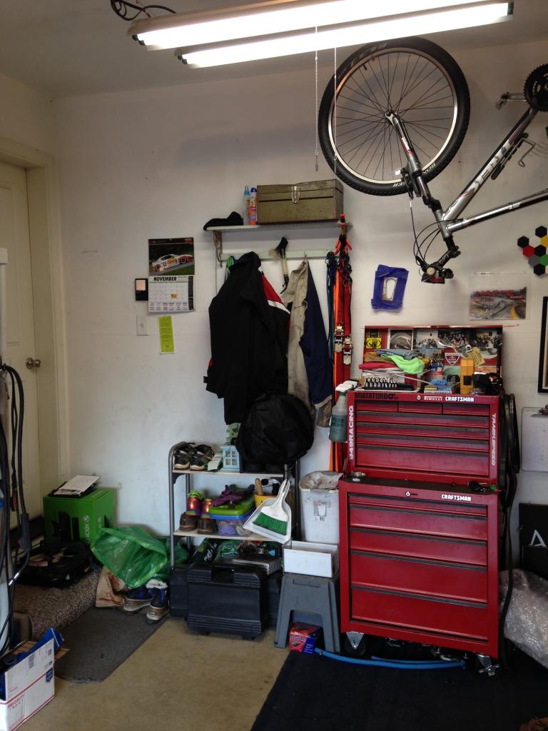 Nice use of space & organization! My single car garage appears to be slightly smaller (not as wide) but not nearly as well organized. That needs to change as I'll be pulling my engine next month for turbo prep + new clutch.