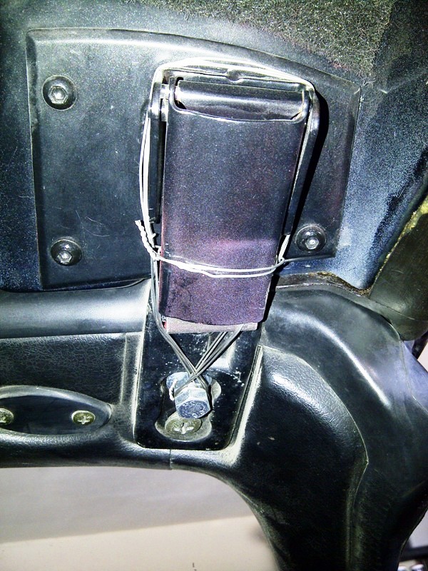 This is actually one of the better seat belt mounts (note that an OEM hardpoint was available to the left in the picture). The bracket is positioned so that it will bend when a load is applied -- which is a no-no.
