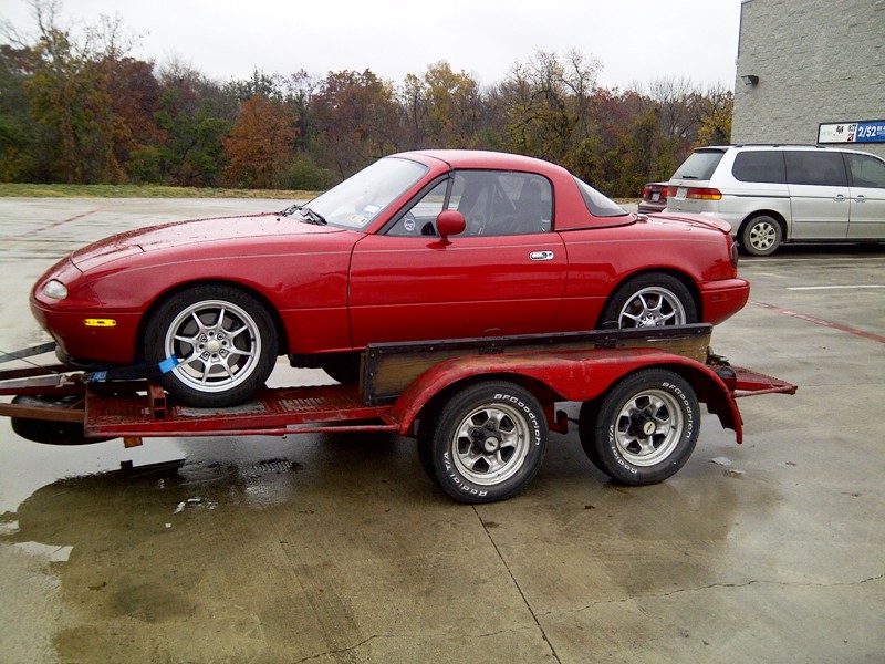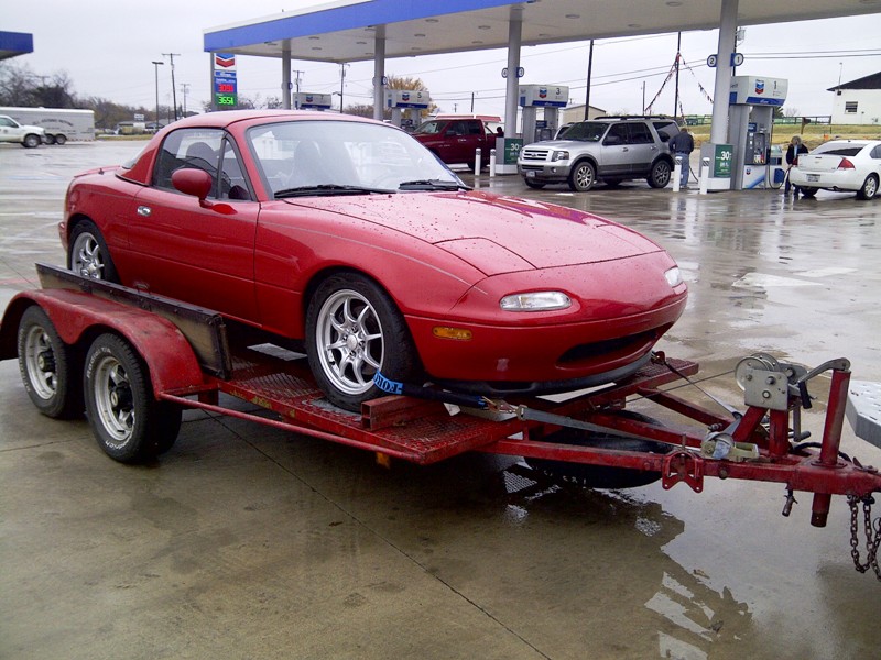 $5000 got me a great start . . . a Red 1995 with hardtop and fresh motor, a trailer and a U'haul full of spares. I bought this stuff from ManiacMitch on the DFW Miata forum -- he's a friend of Hustler's but has decided to move on to a Subaru BRZ.