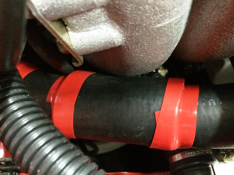 Reroute in. Added rub protection (cut from old radiator hose and secured with self-fusing silicone tape) in locations that had contact/potential contact: