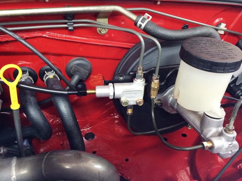 Wilwood adjustable prop valve with remote adjustment. I got the remote kit from Summit (http://www.summitracing.com/parts/wi...4990/overview/). The cable length going from this point through the upper evaporator hole to the center pod was PERFECT.
