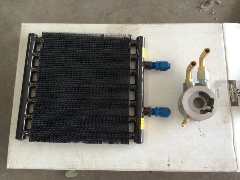 Got a Hayden medium duty tube and fin oil cooler kit. Came with heat exchanger, thermostatic sandwich plate, fittings and hose (0.5"ID or -8). Kit cost ~$120 (partsgeek).