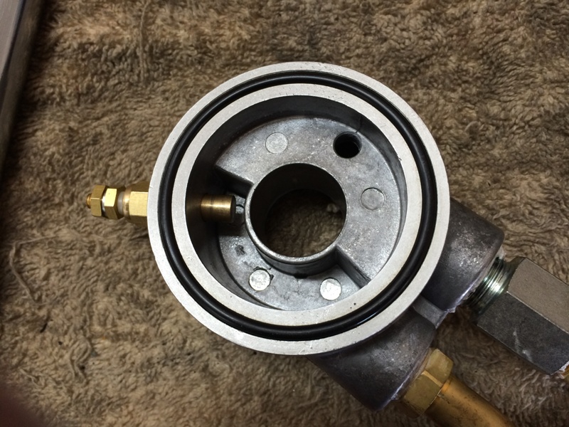 Drilled and tapped the sandwich plate for my oil temperature gauge sensor.