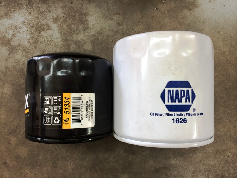 The sandwich plate requires an oil filter with a larger diameter than normal Miata filters. The upside is that you end up with a much larger oil filter. Note that the Wix 51334 in the picture is already quite a bit larger than the stock Miata filter. The NAPA 1626 (Wix 51626) dwarfs it.