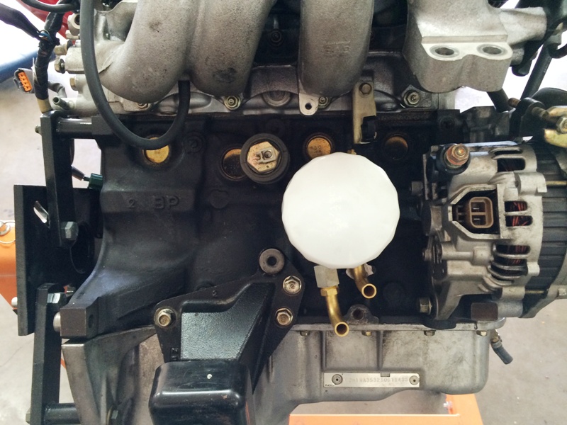Coolant block-off. Replaced missing oil pump bolts. Retorqued water pump and oil pump bolts. Added breather filter to idle valve.