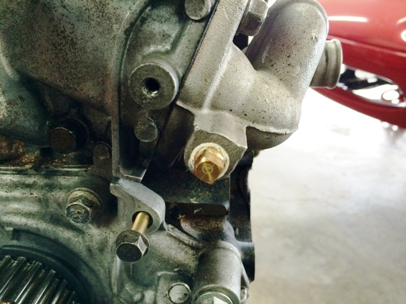 The breather on this transmission was missing, which creates a great entry point for dirt. Got a new breather from Mazda and tapped it in with a brass drift.