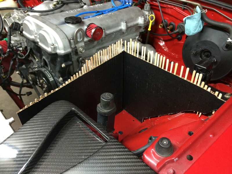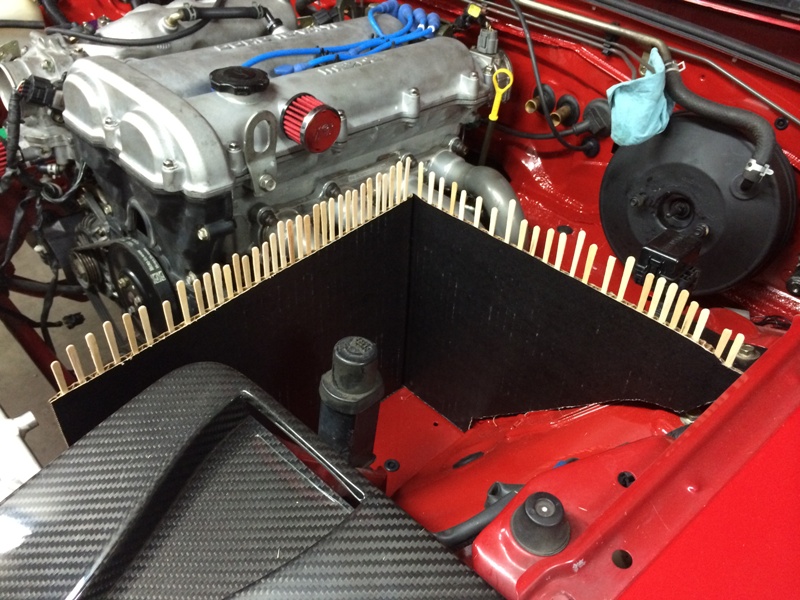 I followed the "cardboard/stick" method to create a pattern for the airbox (see https://www.miataturbo.net/diy-turbo...-shield-35127/). Starting with some cardboard, make a rough pattern.