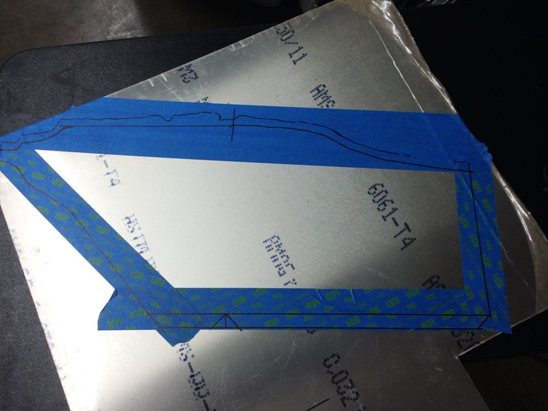 Transfer the pattern to the aluminum sheet (note that I'm leaving room for the trim seal at the top plus adding tabs at the bottom).