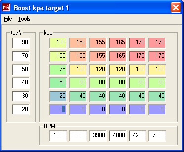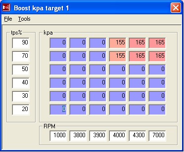 Note that since I have a TPS, I reduced the duty cycles at lower throttle positions to produce more linear throttle response and relieve turbine load at part throttle. This part is strictly optional.