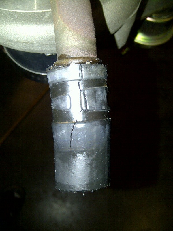 I also found that the turbo oil drain hose was completely cooked. Note that there isn't enough oil flowing through this hose to cool it. This is in contrast to the heater hoses that were still in great shape despite being almost as close to the exhaust manifold.