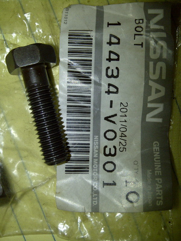 2. Since I went Inconel on the manifold to turbo, I decided to also do Inconel on the turbo to downpipe. This wasn't 100% needed since the original bolts in this location were still in decent shape, but I found some OEM Nissan Inconel bolts for cheap (about $3.50 each):