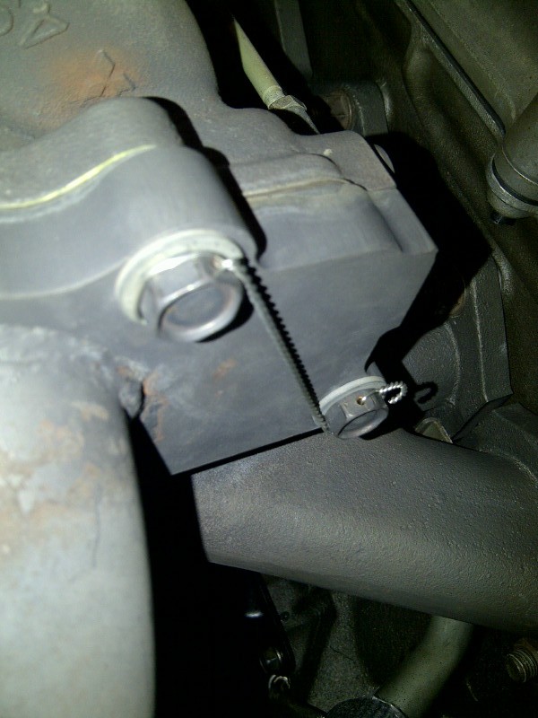 This picture shows the pipe plug at the front of the intake manifold, the TSE front waterneck block-off and the pipe plug at the little 90° tube on the waterpump inlet manifold (circled in red):