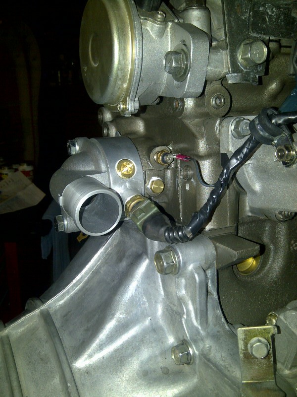 BEGI spacer pictures. Spacer is oriented for a 1.6L with stock crank angle sensor and coil packs. Note that the "cursed water plug" tube has been deleted in favor of a pipe plug: