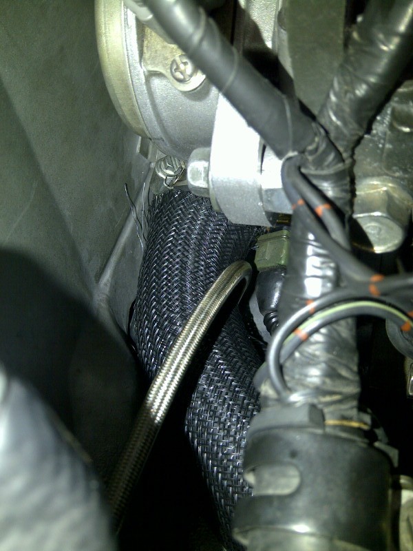 3. Went silicone on the turbo oil drain. This is the silicone hose with oil-resistant inner liner. We'll see if this holds up better to the heat: