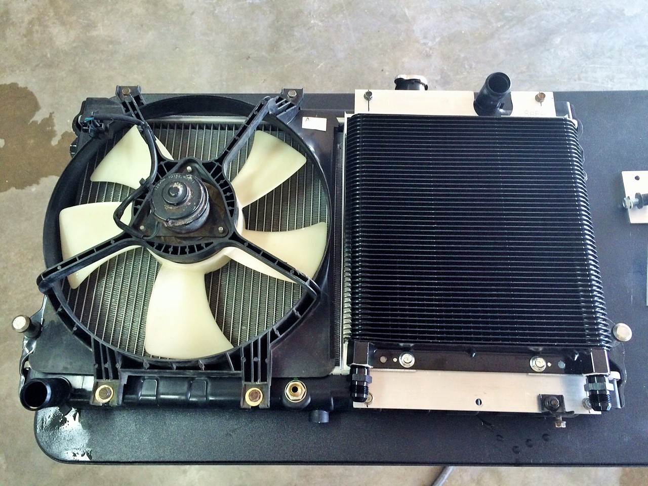 are you using the full racer parts wholesale kit? looking at their site it looks like you're using the 48 row kit that has the thermostat. What thread pitch do you have to order for it? love the updates to either of your cars as always.