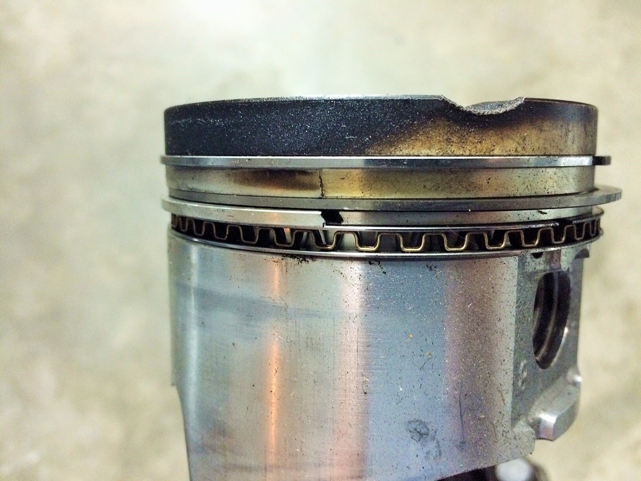 If you'll recall (see https://www.miataturbo.net/build-thr...6/#post1113926), I lost a piston last time I was on track. In the meantime, rebuilt the engine with forged rods but otherwise stock specs. Added an MLS head gasket and ARP studs. Engine is back in the car and now I'm making everything fit and rerouting the charge tubes for the FAB9 intercooler. Here's a picture of that piston . . . busted ringlands: