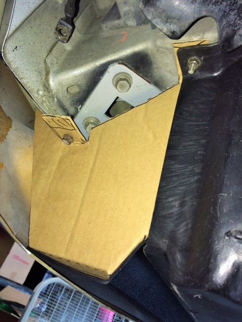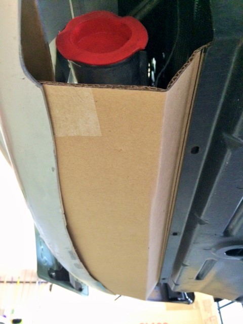 Made a cardboard pattern for the bottom. This encloses the intercooler and mates with the OEM undertray.
