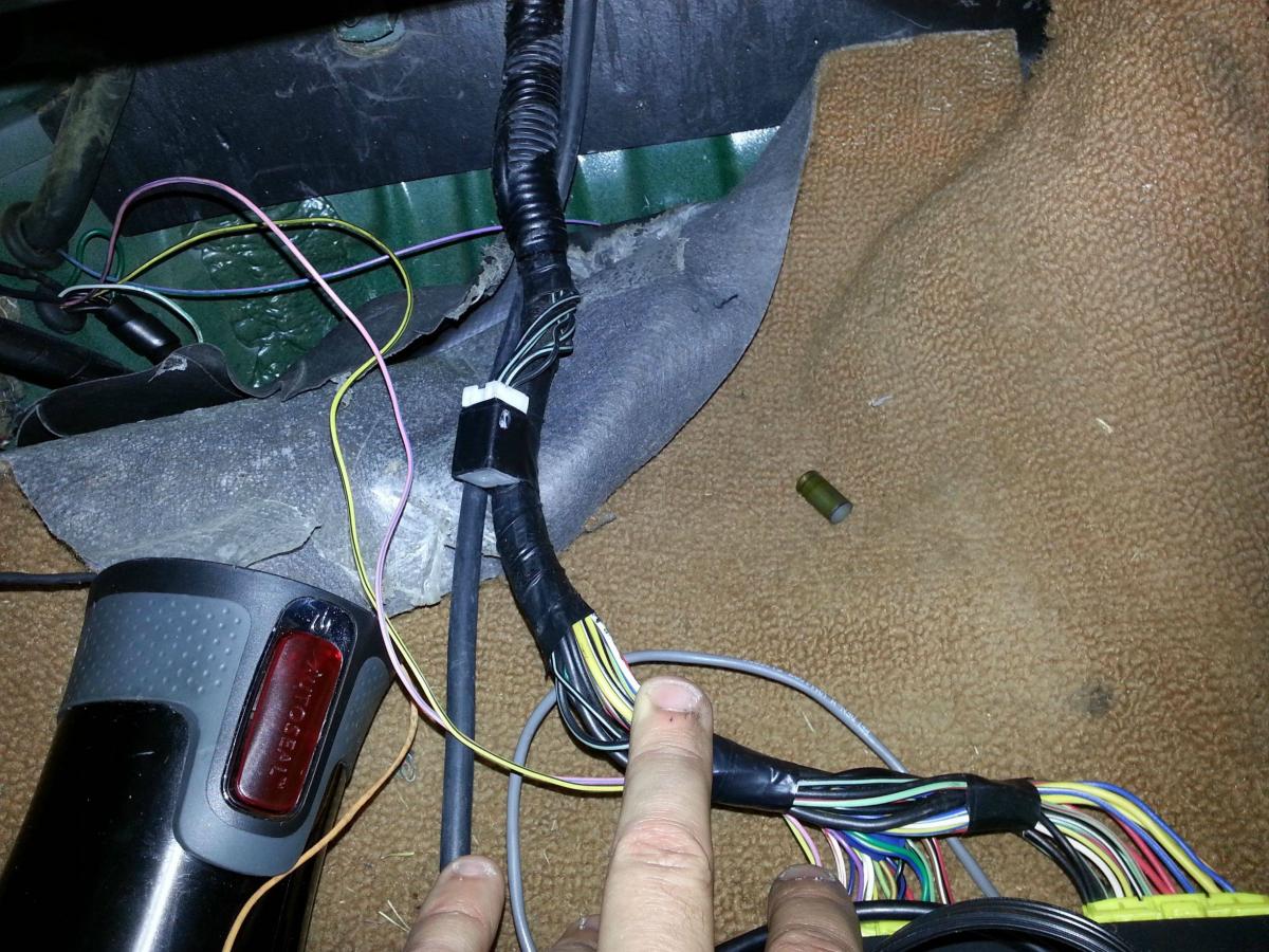 See that little white plastic guy with all the blk/grn wires? I assume that's all 5v grounds. Do I need to find the wire in question from that bundle and take it to 2c, take 2c to the body, 2c to the engine, or just run a new wire to 2c?