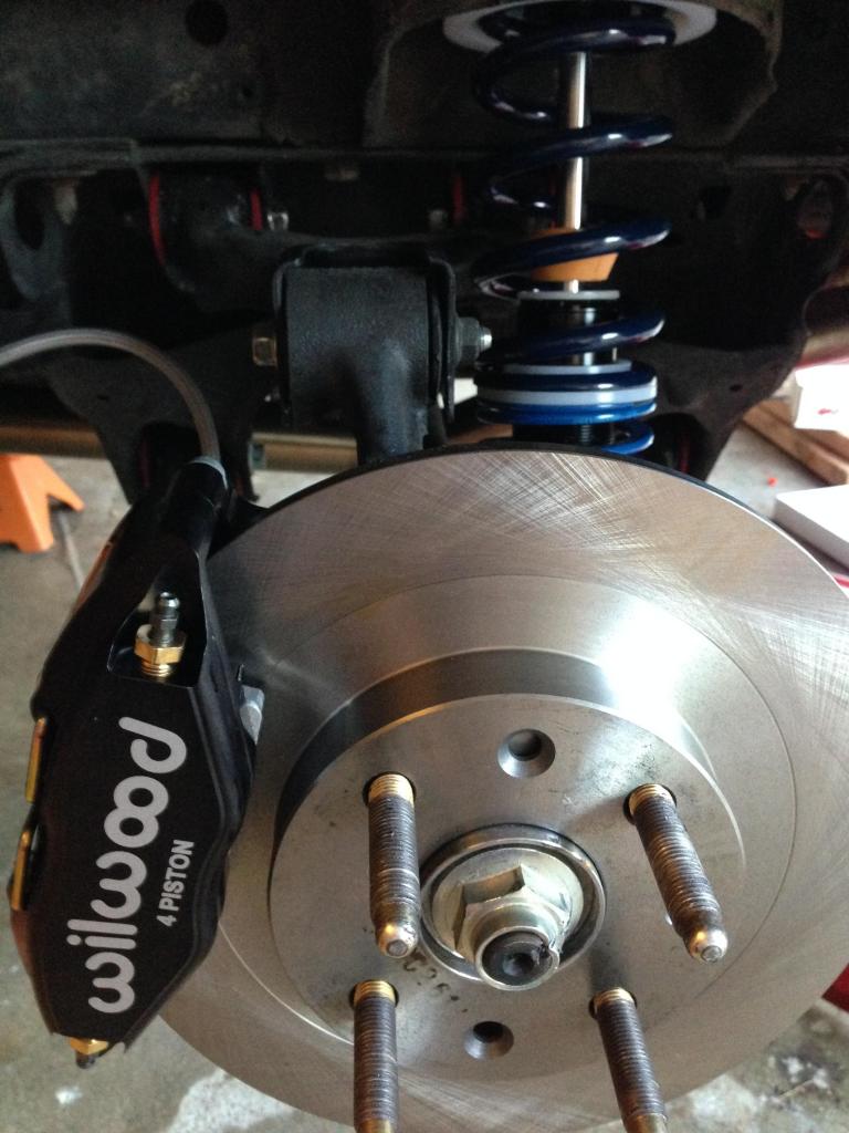 TSE 11.75" front brakes, Sport rears, DTC-60 all the way around, ducting on the fronts, Sport master and booster, Wilwood prop valve. The car is shockingly good on brakes, that's where it makes-up all the time.