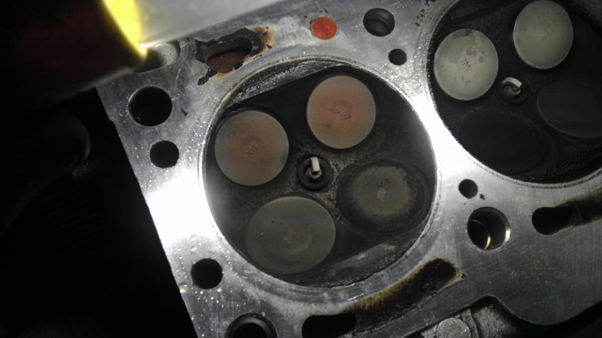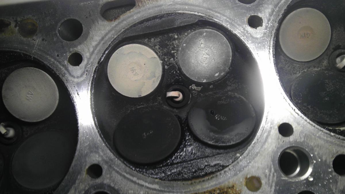Edit: one of the cylinders looks like it has a lot more gunk around the intake valves than the others. Leaking valve seal creating carbon deposit so vale doesn't close???