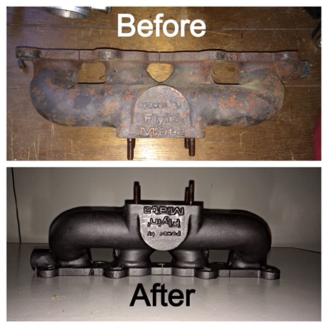 Used por15 Manifold paint. Says it is good up to 1500F. We will see. I stripped it down taking off any loose rust, used por15 marine clean then metal prep. The metal prep stuff is great, it changes rust, from being rust.