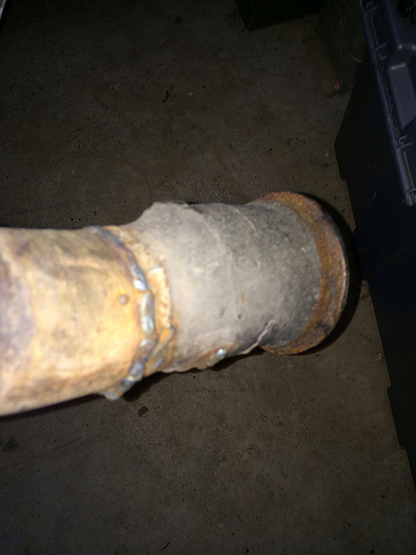 My beautiful downpipe. I also have some exhaust paint coming I plan on using on this thing. I didn't make it. It came as part of a packaged deal. I will use it for a season or so, until I can afford nicer.