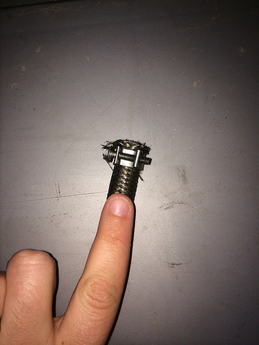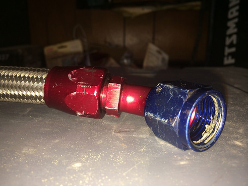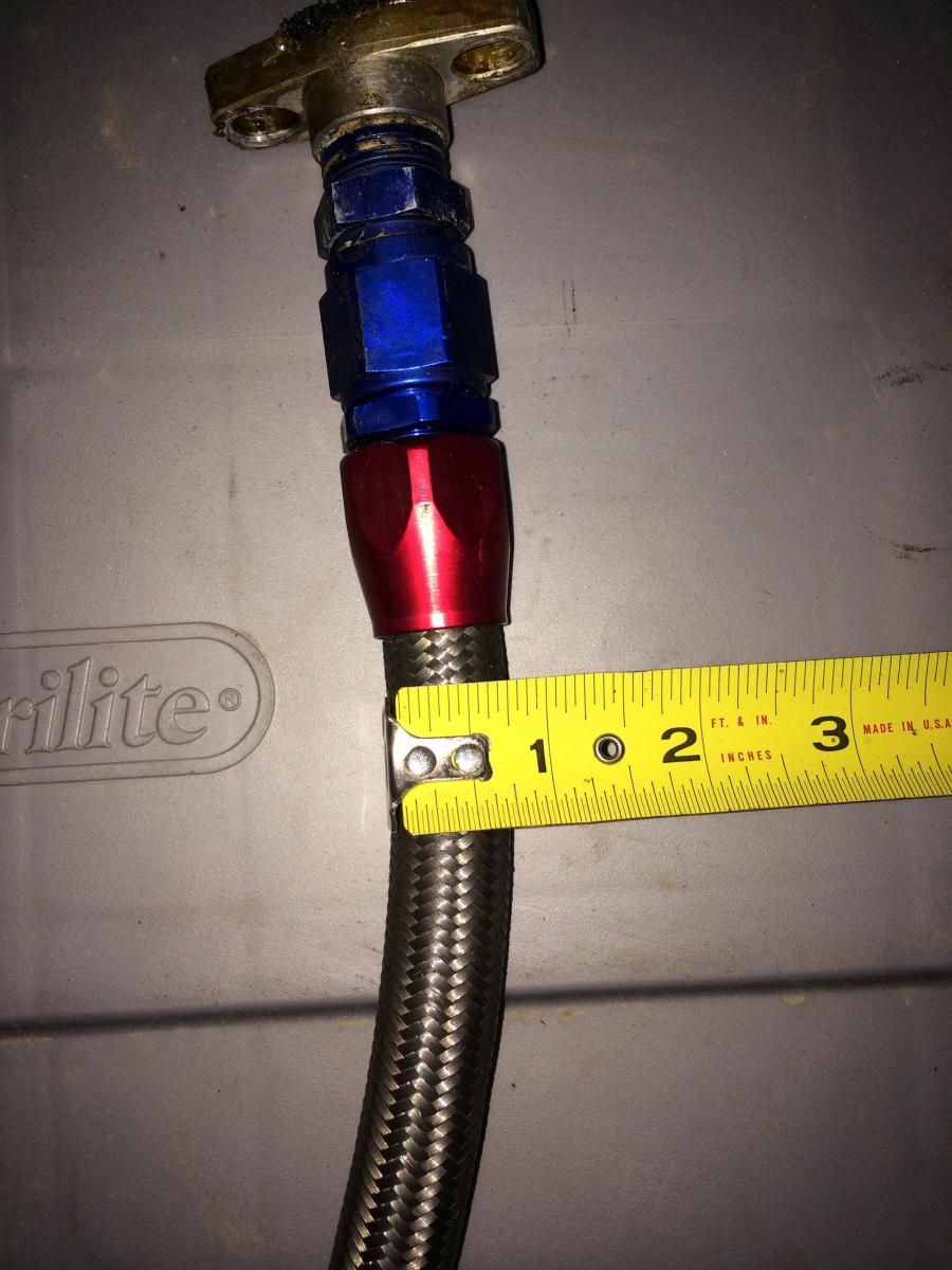 For my oil feed, I need to add a 90° end fitting to -4 AN. BUT, I can't figure out my the size of the feed line. I have never messed with hoses, fittings etc so I have no clue about sizing and eyeballing what is what. I know after the first time of holding each one in my hand I would never have another issue, but I don't have access to any other than my unknown lines.