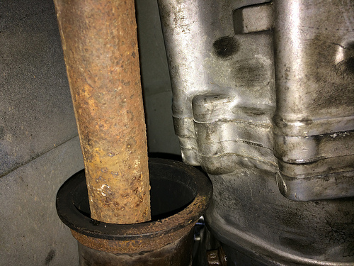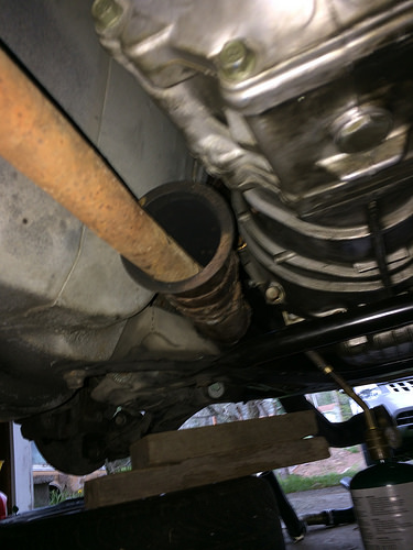 I thought after that I would be ready to go. But, no. I thought I had made enough room with the downpipe and was clear, but it was vibrating against the subframe and transmission. I was able to move it around some and clear the subframe, but with only 1 set of hands, I couldn't get clear of the transmission. I got a little more room so now it only vibrates against it on startup and decel. When I can get a hand, I think I can move it to where I will clear and someone else torque it down.