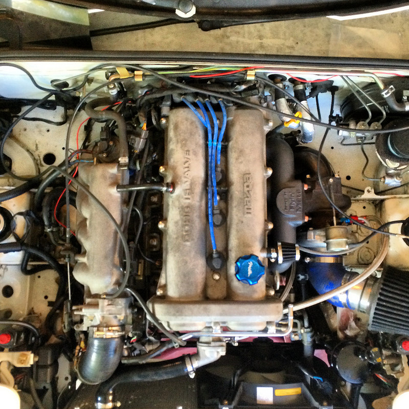 Spent way too many hours yesterday putting the car back together, wiring in the Wideband, boost gauge, and megasquirt (Soldering in a car is interesting). Filled her up with fluids, opened up tunerstudio and it looked very different from all the tutorials I had seen. I didn't touch the timing on the car and didn't have a timing light available so I thought forget it, I didn't come this far today to stop here. YOLO!!! (Or would it be You only crank once) Turned the key and it fired right up and idled right around 1000. I turned it off and thats where I left it. Emailed rev and he has directed me to where the settings moved to. I have also sourced a timing light and will get that sorted out some day this week.