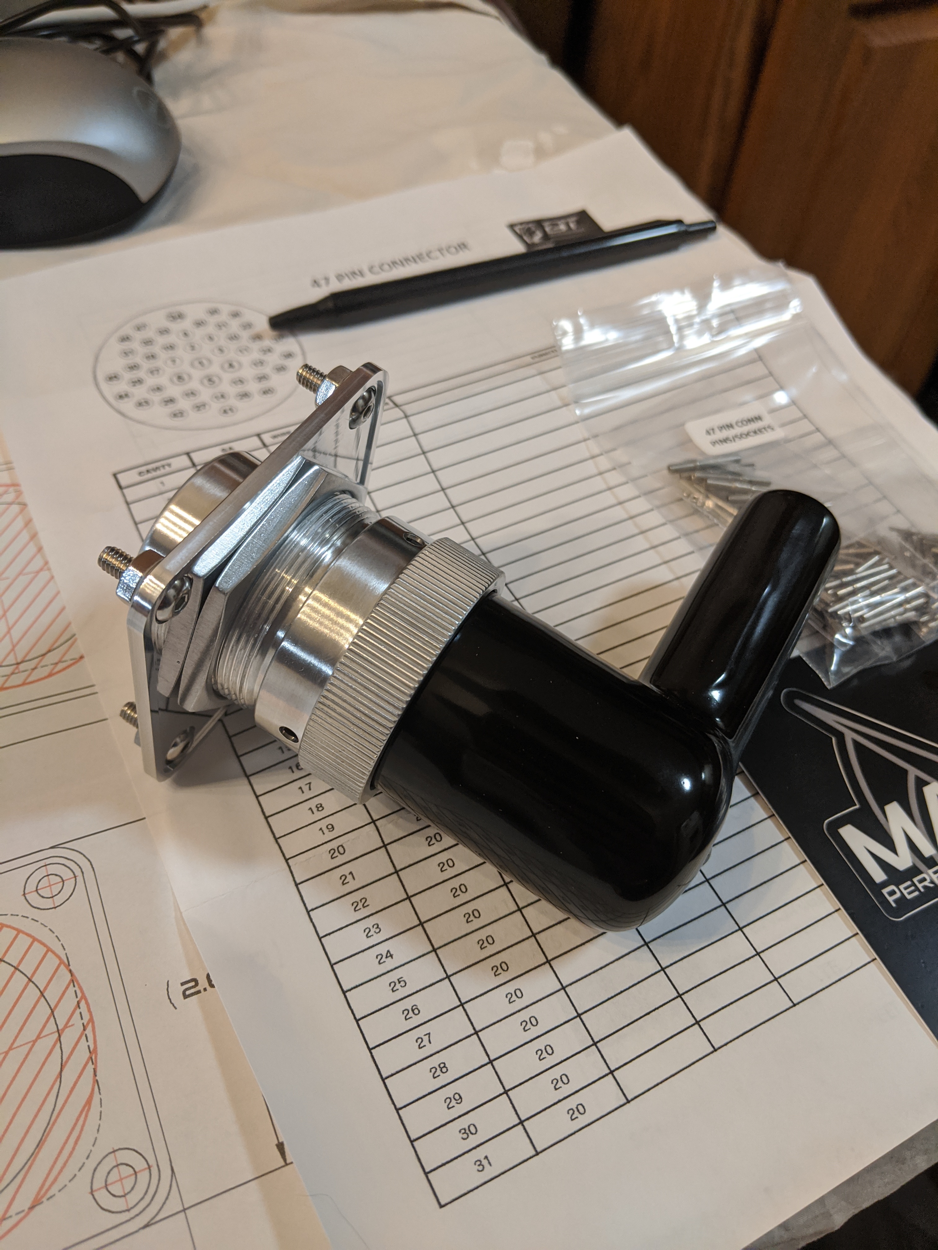 Then I mulled back and forth for a while on if I wanted to get fancy or not with the wiring. I decided to just say screw it and pulled the trigger on a nice 47 pin bulkhead fitting from Maven Performance. No more headaches with passing wiring through the firewall ever again. If a motor ever needs to get pulled for some reason, it will make it painlessly simple as well.