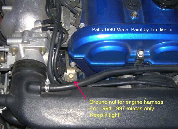 I need to know where all the harness/engine/ecu grounds are in a 95. All the results I found searching were 1.6 or NBs, and I don't Miata well enough to just know these things.