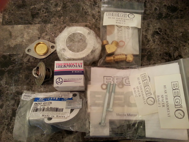 Homebrew Begi re-route stuff. (Huge caddy hose not pictured, but i has it.) Found original invoice for the order from Begi in the box. They charged this poor sap $17.99 shipping and handling, then stuffed everything in a small USPS flat rate box.